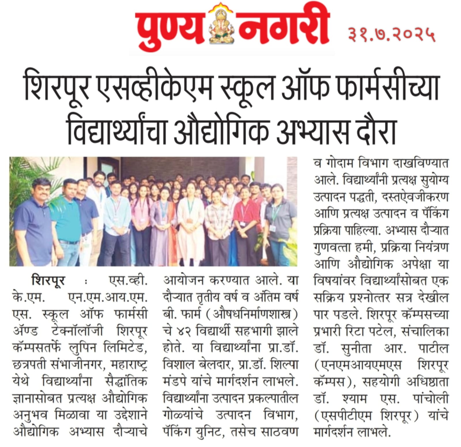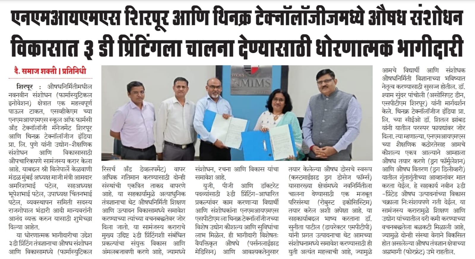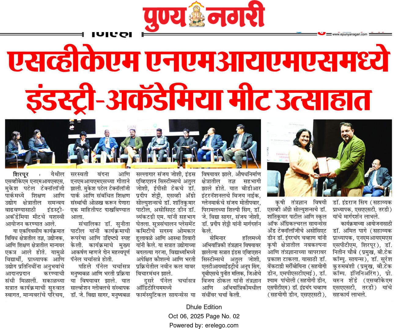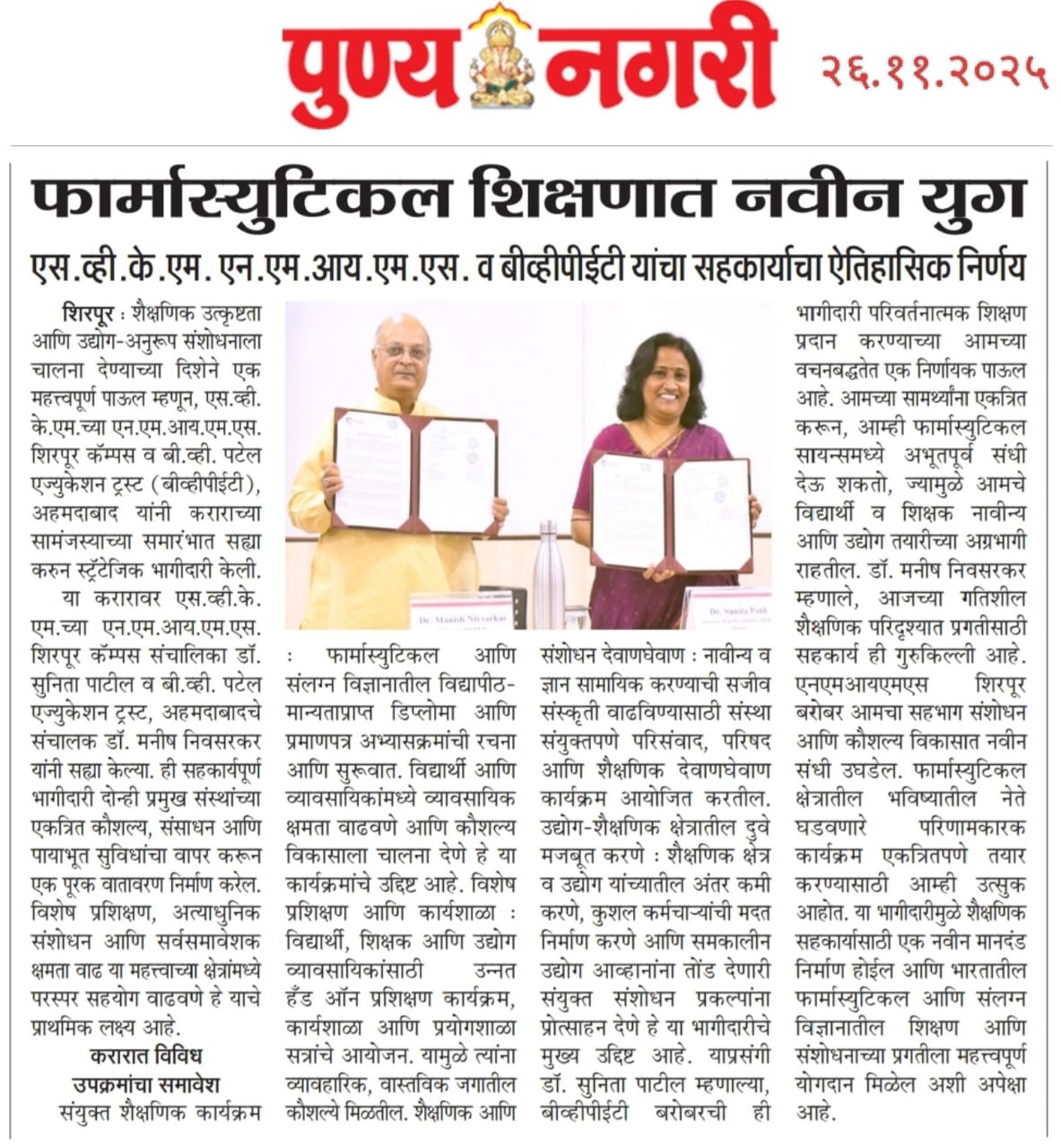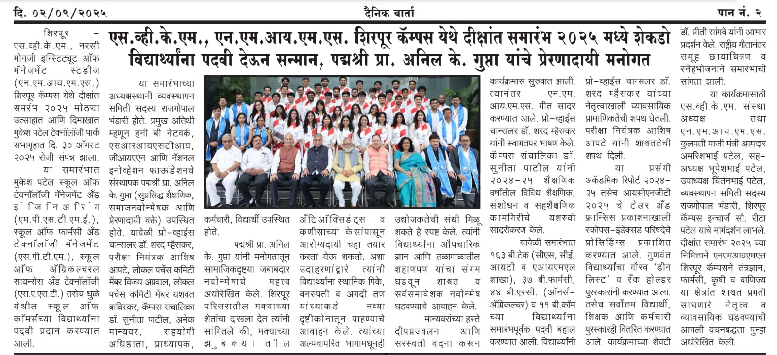 SVKM’s NMIMS, Mukesh Patel Technology Park, Shirpur Campus is an integrated campus approved by the All India Council for Technical Education (AICTE), New Delhi. SVKM’S NMIMS Shirpur Campus is an affiliate of NMIMS (Deemed-to-be University), which has been accredited with A+ Grade by the National Assessment and Accreditation Council (NAAC) and has been recognized as a Tier 1 University by the University Grants Commission (UGC).